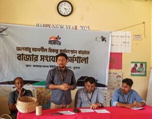 নিজস্ব প্রতিনিধিঃ ২১ ফেব্রুয়ারী শনিবার দাকোপ উপজেলা কামারখোলা ইউনিয়ন পরিষদ এর এজিচার্জ কক্ষে নবোদয় জলবায়ু সহনশীল বিকল্প কর্মসংস্থান বাড়তে বাজার সংযোগ কর্মশালা অনুষ্ঠিত হয়েছে।দাকোপ উপজেলা প্রজেক্ট অফিসার এস এম নাহিম হাসান এর সভাপতিত্বে প্রধান অতিথি হিসেবে উপস্থিত ছিলেন, রাজবি আহমেদ,এবং বিশেষ আলোচক হিসেবে উপস্থিত আসিফ মাহমুদ। নবোদয় প্রকল্পের কর্ম সংস্থান দাকোপের কামারখোলা ইউনিয়নে ঝরেপড়া গরীব অসহায় পরিবারের নারীর কর্মসংস্থান বৃদ্ধি করতে নবোদয় প্রকল্প ব্যাপকভাবে প্রচারিত ও এগিয়ে চলেছেন। হাতে বাঁশের তৈরি বিভিন্ন ধারণের মালামাল কিভাবে বাজারজাত করে উন্নয়ন করা যায় সে বিষয় বিশেষ আলোচনা ও পরমর্শ বার্তা প্রদান করেন। ওই সময় উপস্থিত আবাসিক পর্যায়ে নারীরা বিভিন্ন মত প্রকাশ করেন। নবোদয় প্রকল্প জলবায়ু সহনশীলতায় মানুষের কল্যাণে বেকারত্ব দুর করণে অক্লান্ত পরিশ্রম করে চলেছেন।